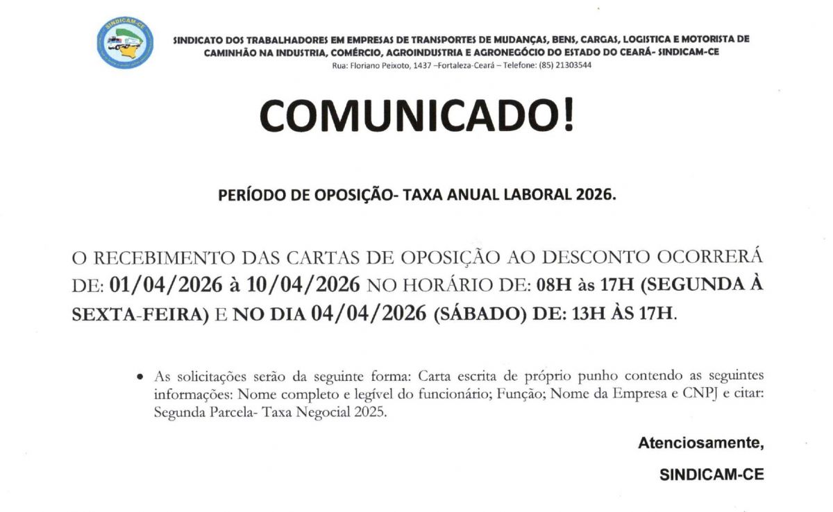 Comunicado: PerÃodo de oposição - Taxa Anual Laboral 2026
