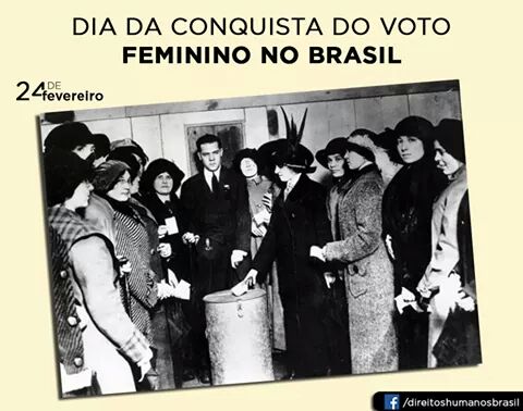 Em 24 de fevereiro de 1932 as mulheres passaram a ter direito ao voto no Brasil. O país foi o segundo da América Latina a conquistar o direito ao voto feminino, ficando atrás apenas do Equador. Hoje mais de 52% de eleitores são do sexo feminino. Além das mulheres votarem, elas iniciaram também sua entrada no mundo da política, candidatando-se a cargos eletivos.