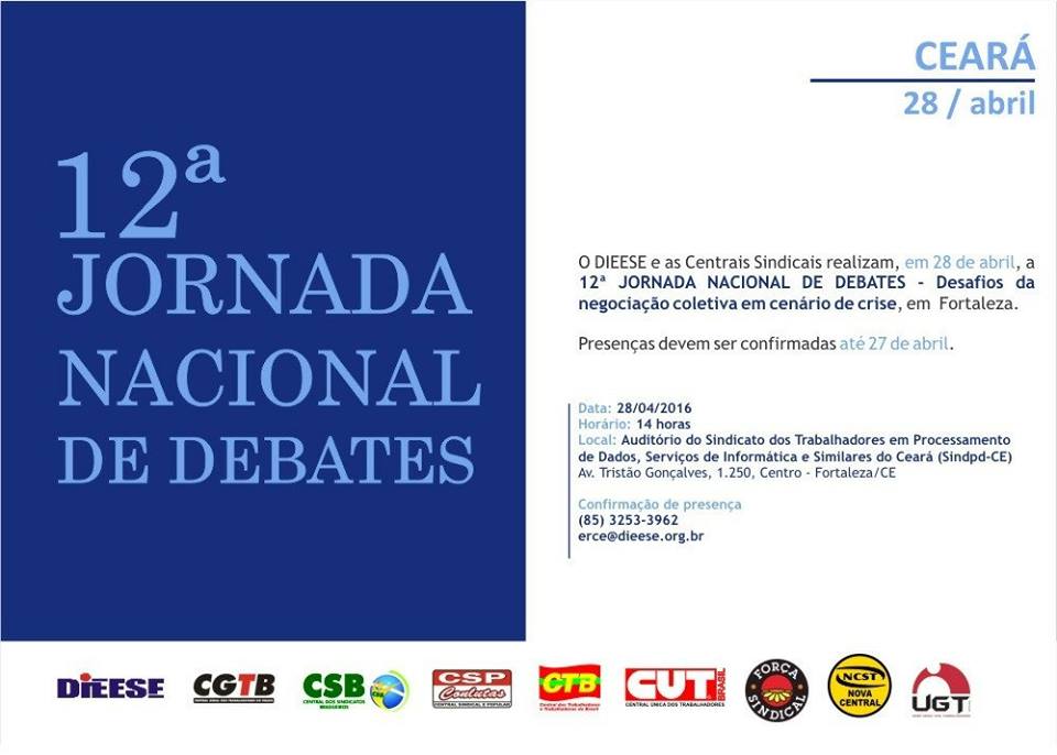 Os desafios das negociações coletivas frente ao cenário atual será o tema da X Jornada Nacional de Debates promovida pelo Dieese (Departamento de Estatísticas e Estudos Socioeconômicos) e as centrais sindicais. A jornada de debates acontece em 26 estados brasileiros e no Distrito Federal entre os meses de abril e maio.