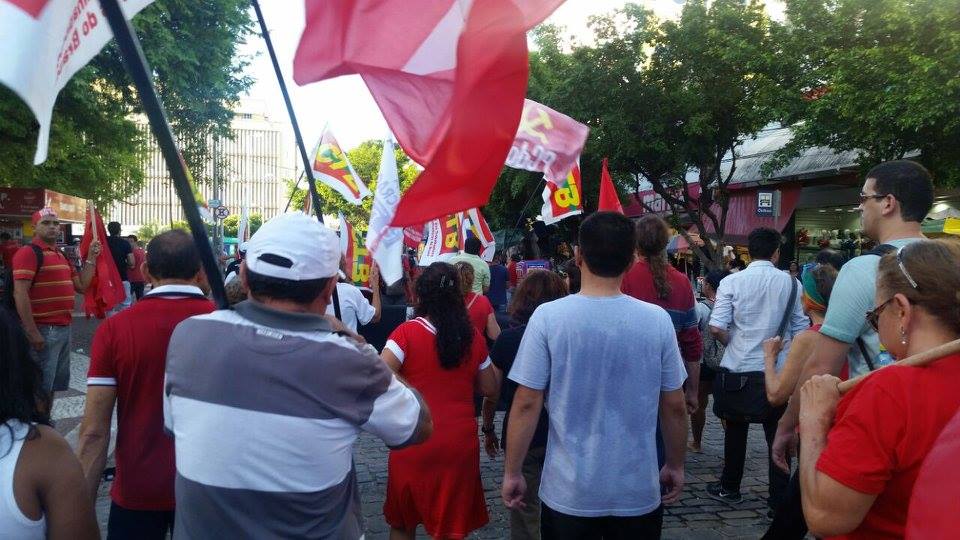 A Frente Brasil Popular convocou atos e mobilizações contra o impeachment por todo o Brasil. Em Fortaleza, nesta última sexta-feira, (15), os militantes realizaram um Cortejo pelo Centro, a concentração se deu no Teatro José de Alencar.